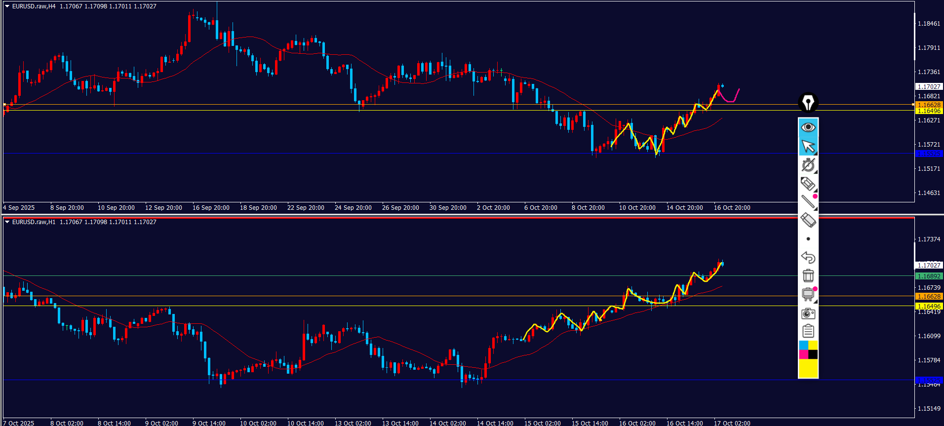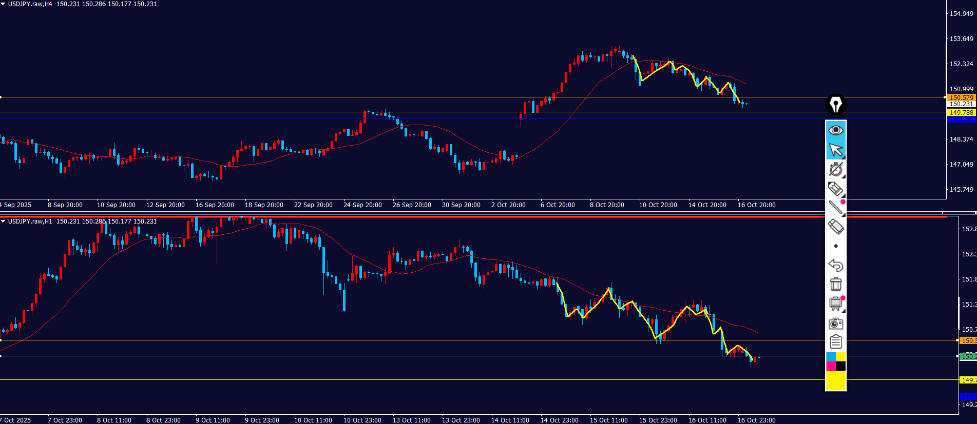 1Hが下降トレンド転換して、4Hの押し目までいったら押し目買い狙えそう