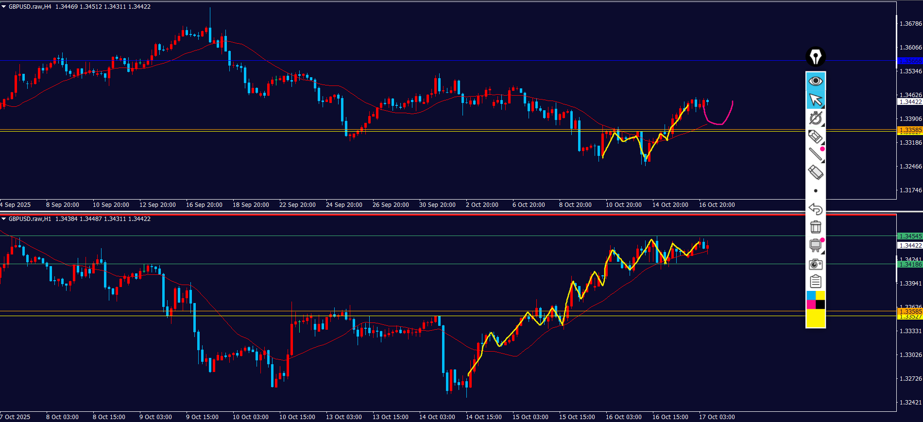 オレンジのダウカウントで見てる人もいるかもしれないけど、MAが下にいるので自分は黄色で見る