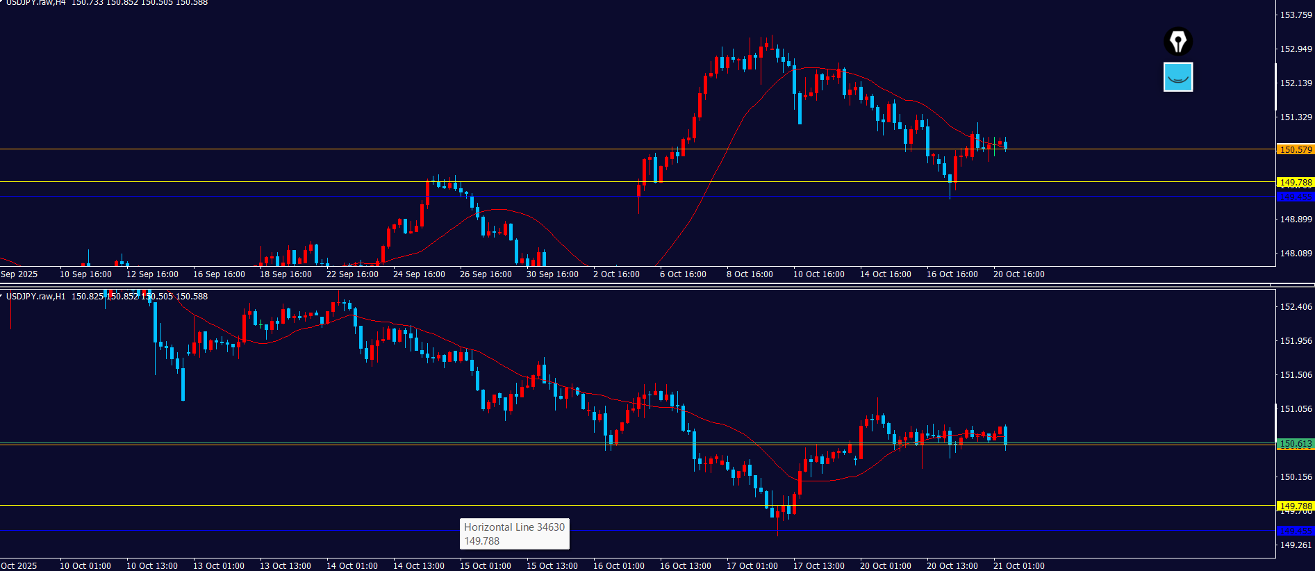 - 4時間足と1時間足同時にトレンド転換したら「攻防ライン」を見る