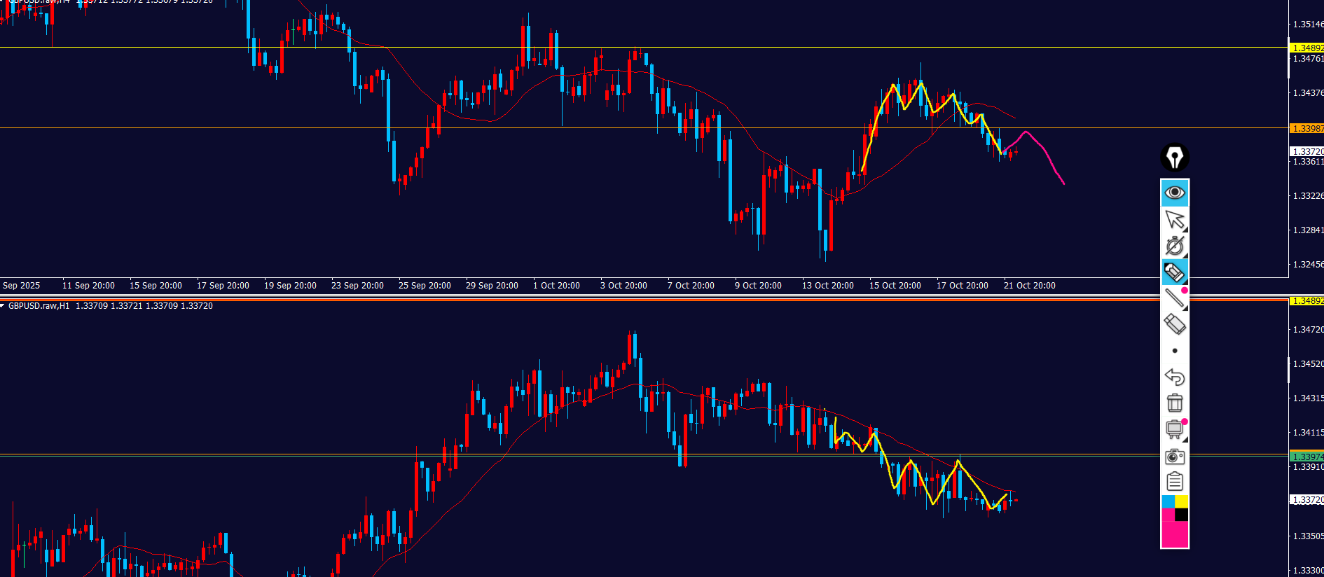 - 4時間足と1時間足同時にトレンド転換したら「攻防ライン」を見る