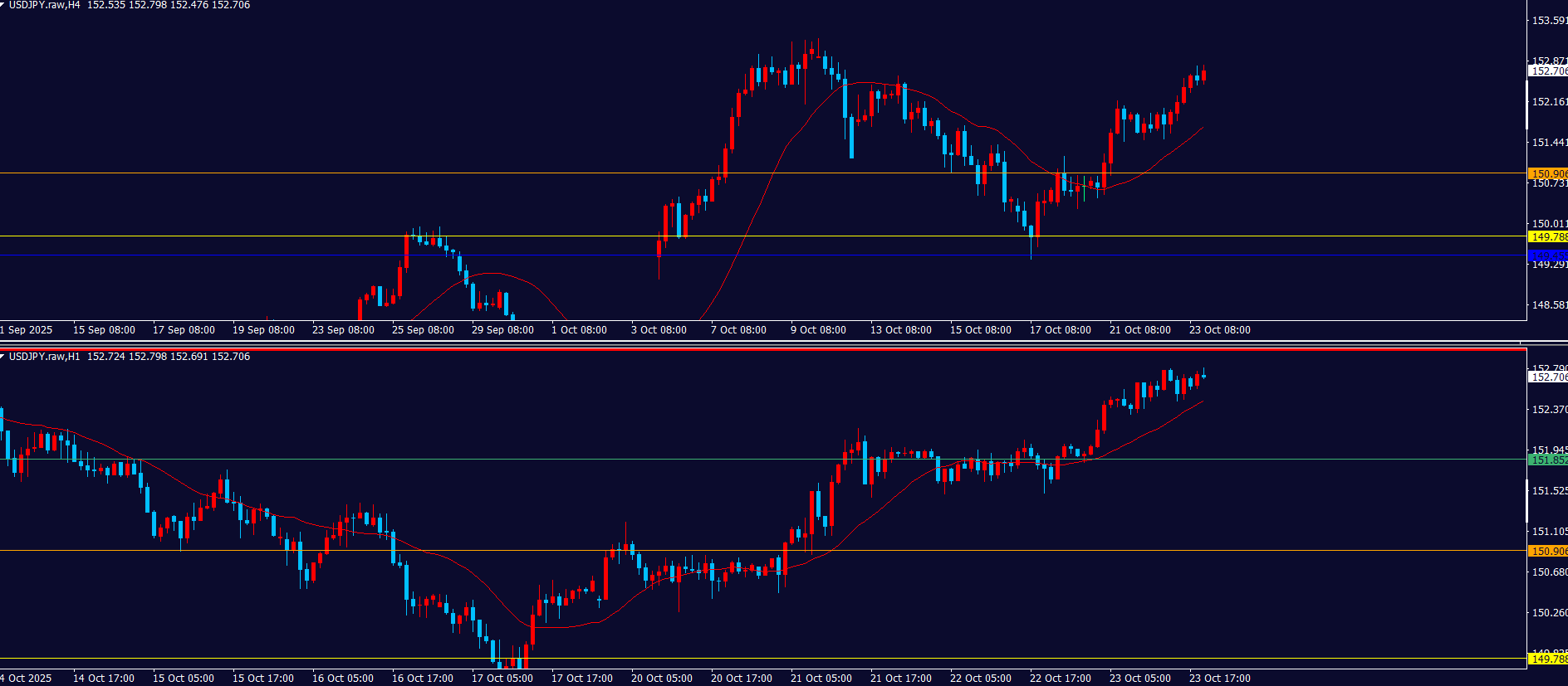 1Hで上昇の勢いの減少が見えるので、1Hがトレンド転換して4Hまで戻すようであれば、チャンスあり。