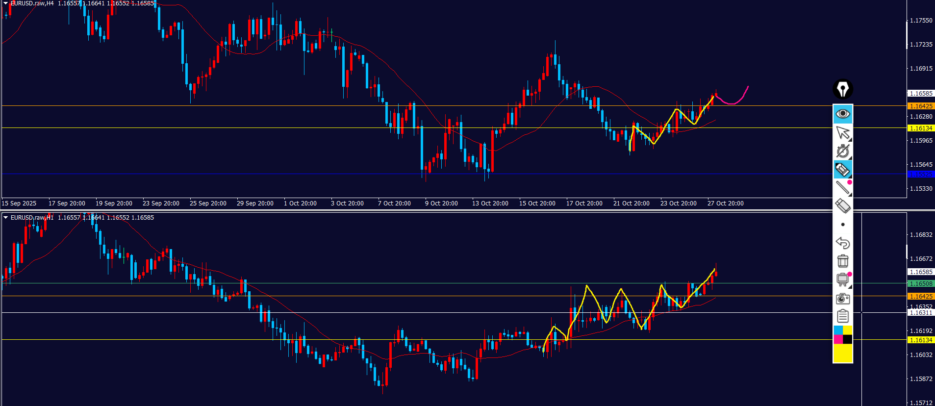 - 「4時間」の波が止まって押し目買い(戻り売り)エリアで入る