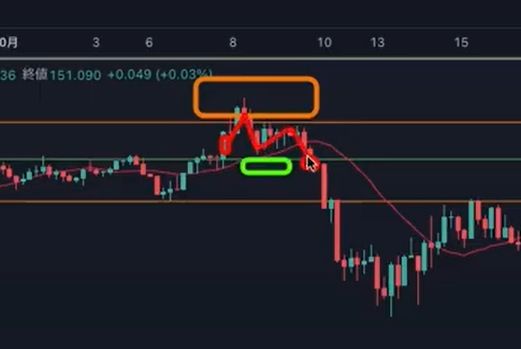 - 4時間足の戻り売りを狙う際に「1時間の押し目買い」「15分のネックライン割れ」でエントリーを狙える