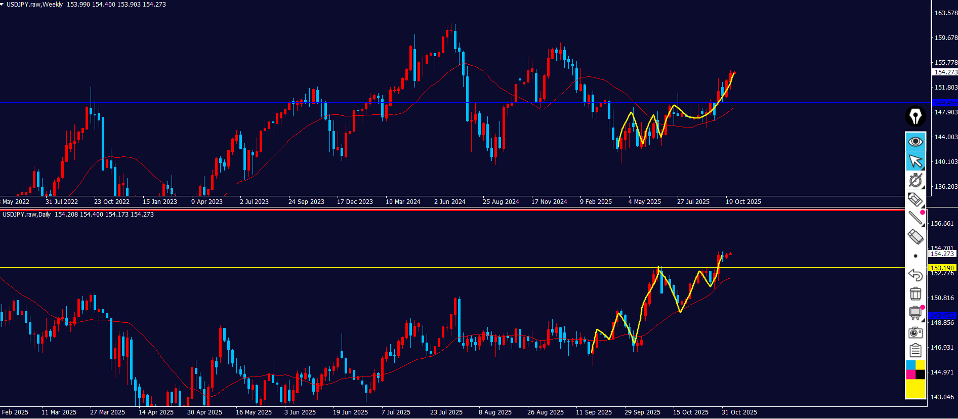 週足も下降トレンドになって、日足でも下降の波の途中なので、下降のイメージを持っておくことを忘れずに狙っていく