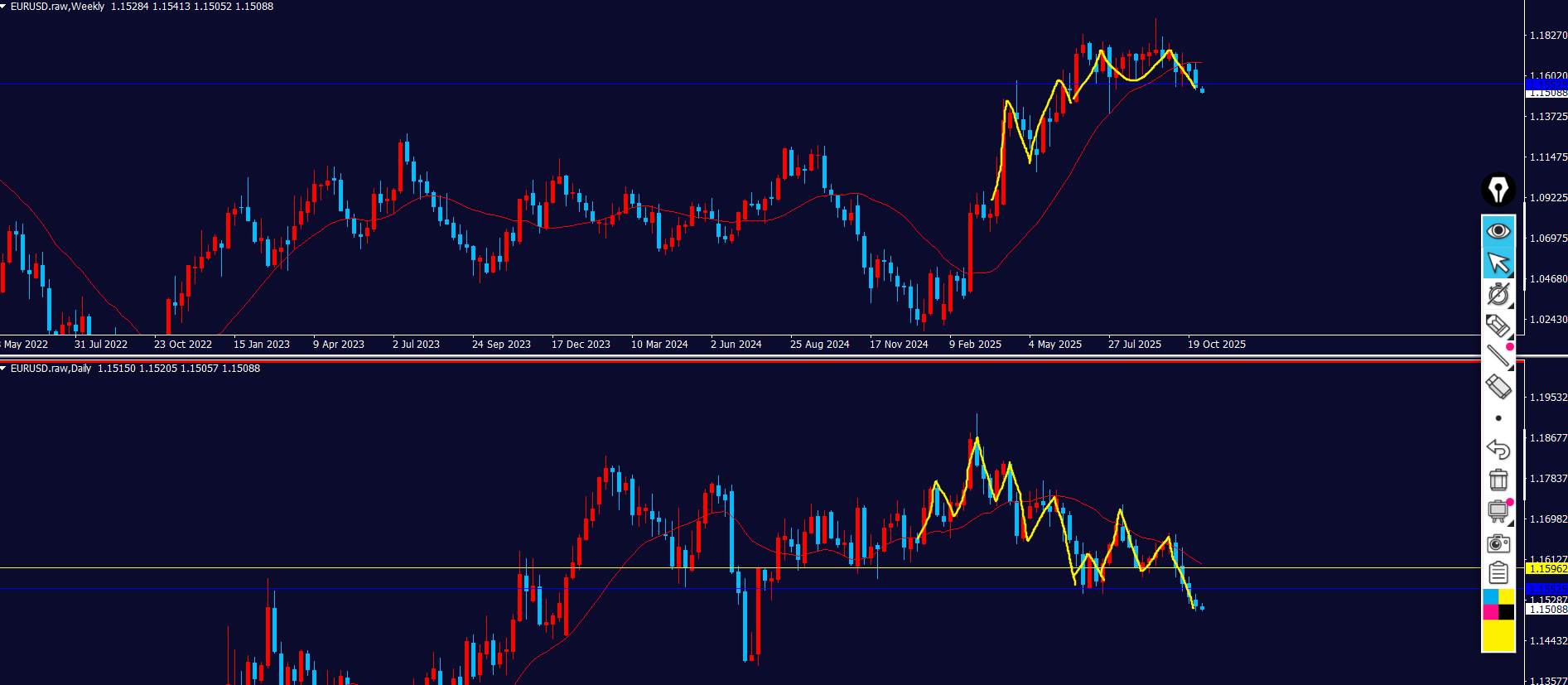 黄色ラインの上に戻り売り勢力がいる⇒波が出やすい