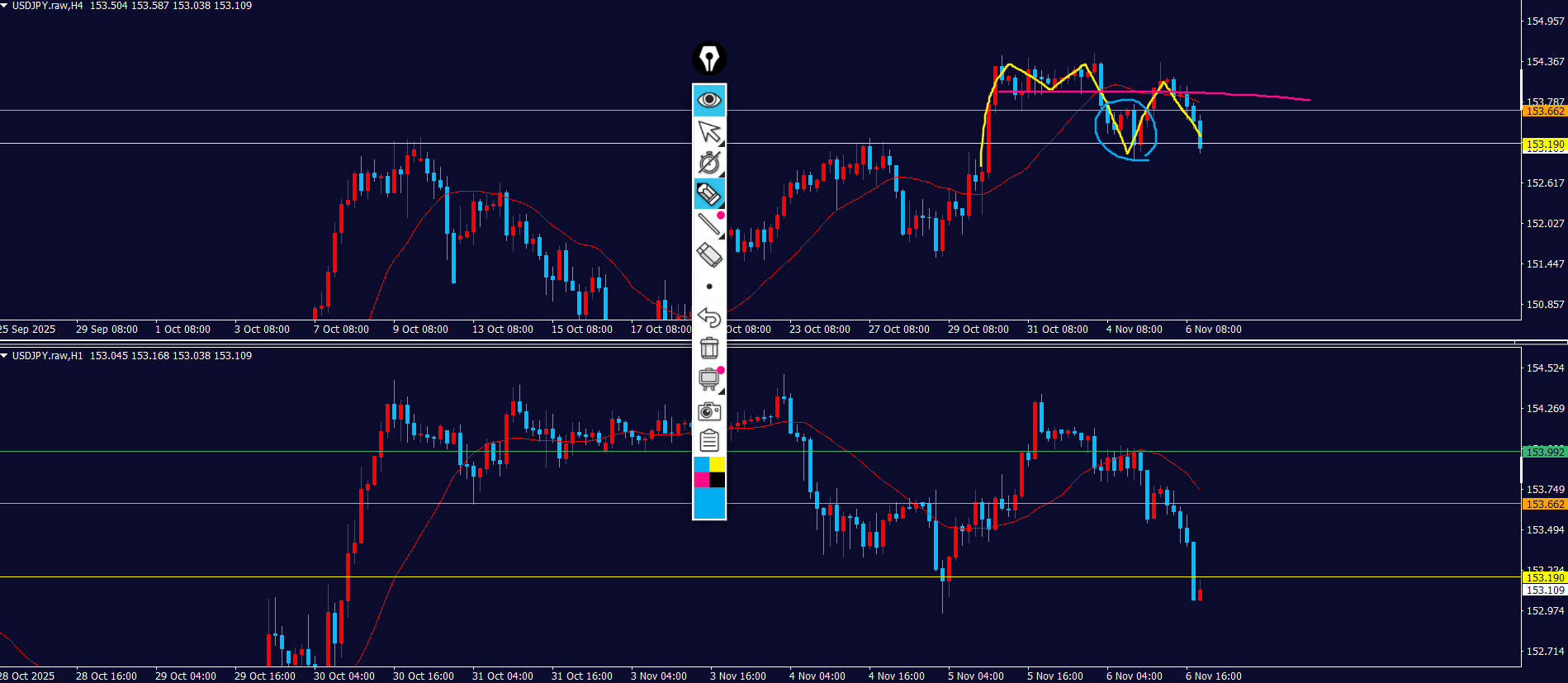 週足も下降トレンドになって、日足でも下降の波の途中なので、下降のイメージを持っておくことを忘れずに狙っていく