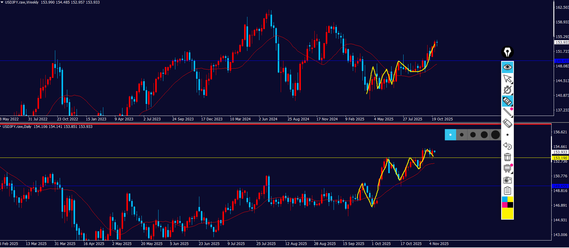 黄色ラインの下に押し目買い勢力がいる⇒波が出やすい