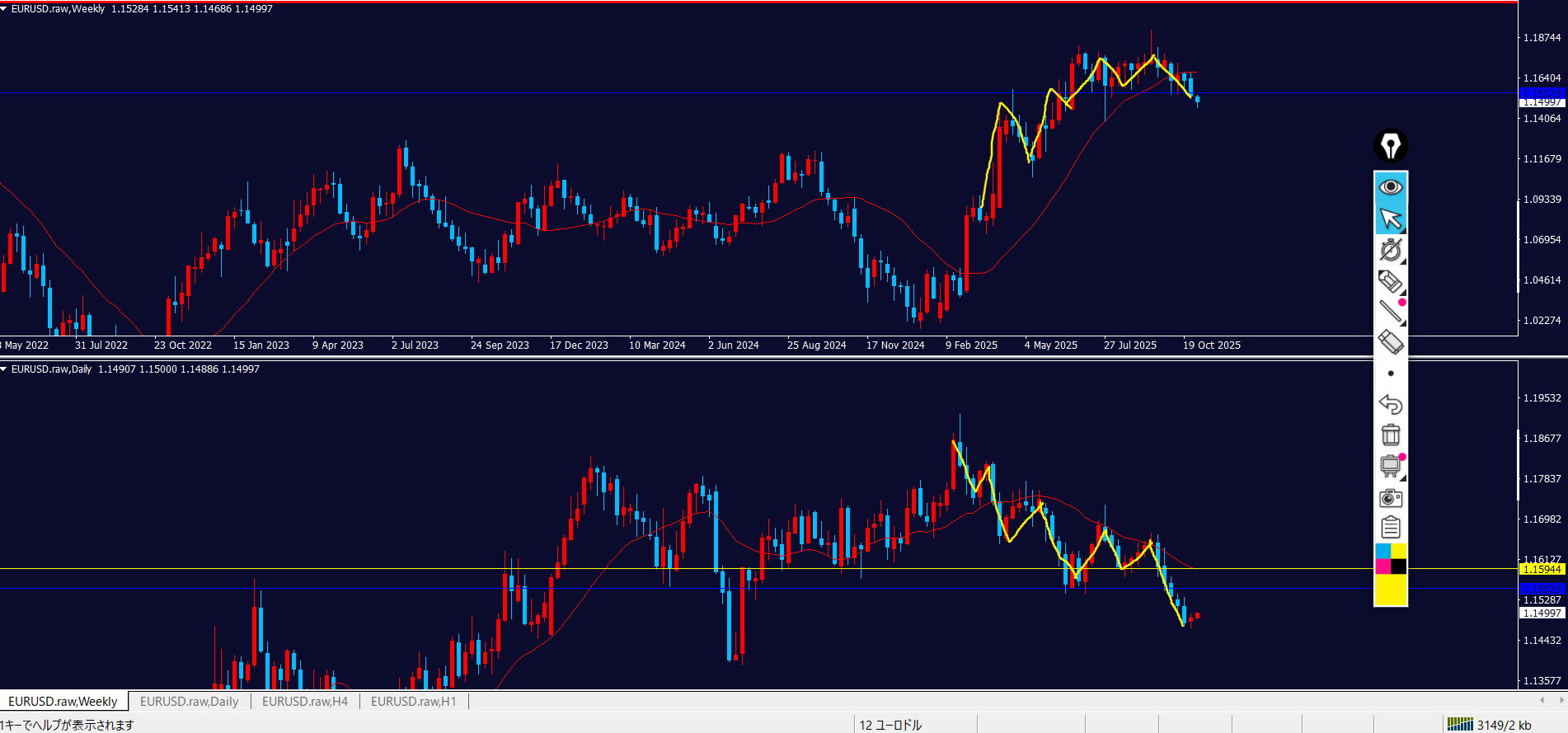 黄色ラインの上に戻り売り勢力がいる⇒波が出やすい