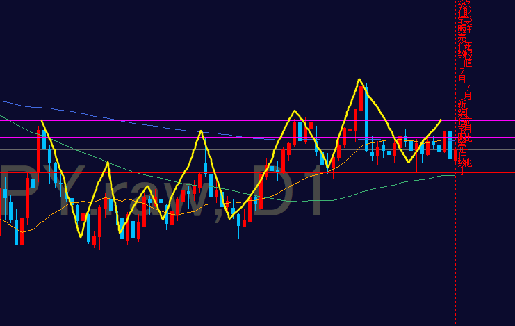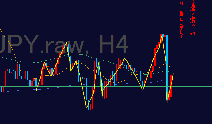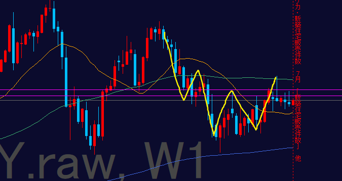 週足の紫ラインの売り勢力のところで、大きく髭の反応あり。