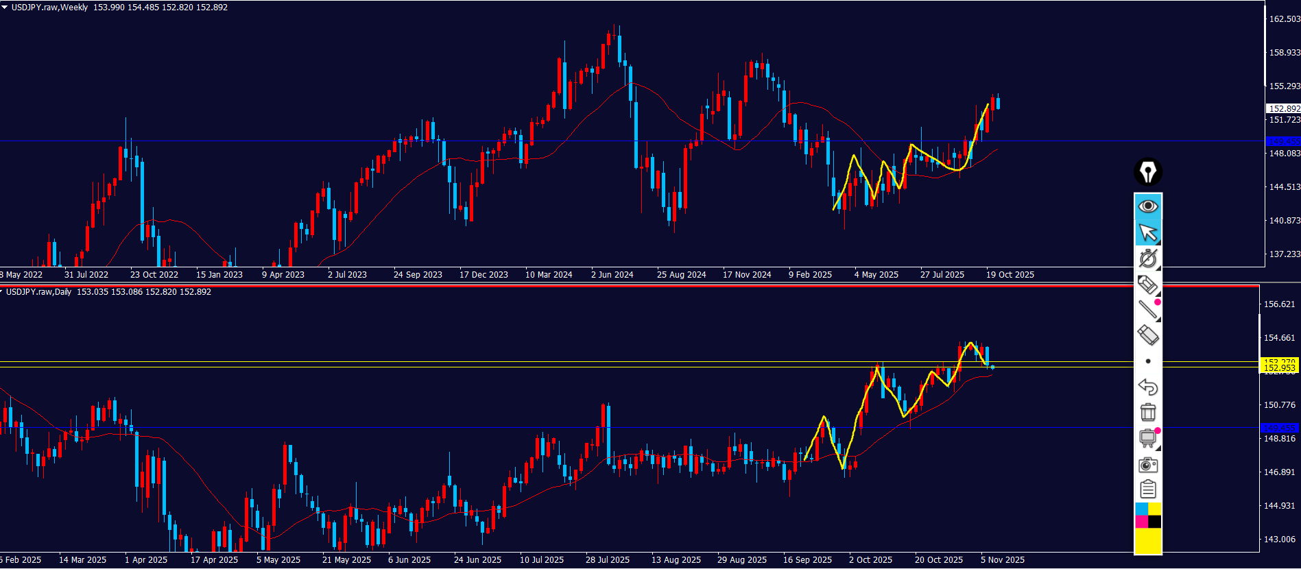 黄色ラインの下に押し目買い勢力がいる⇒波が出やすい