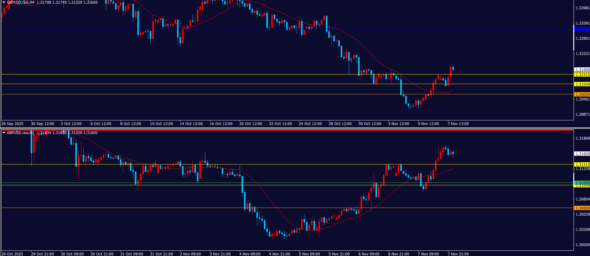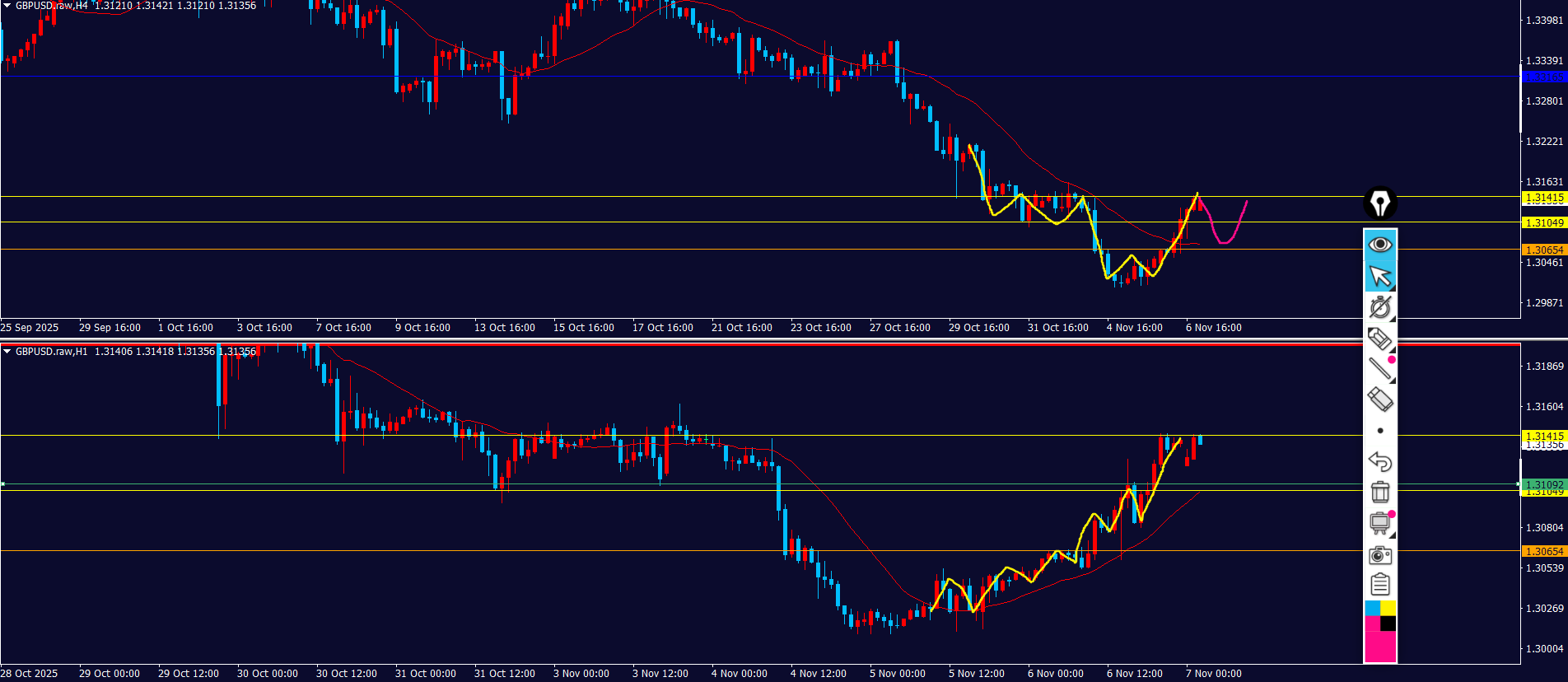- 「4時間」の波が止まって押し目買い(戻り売り)エリアで入る