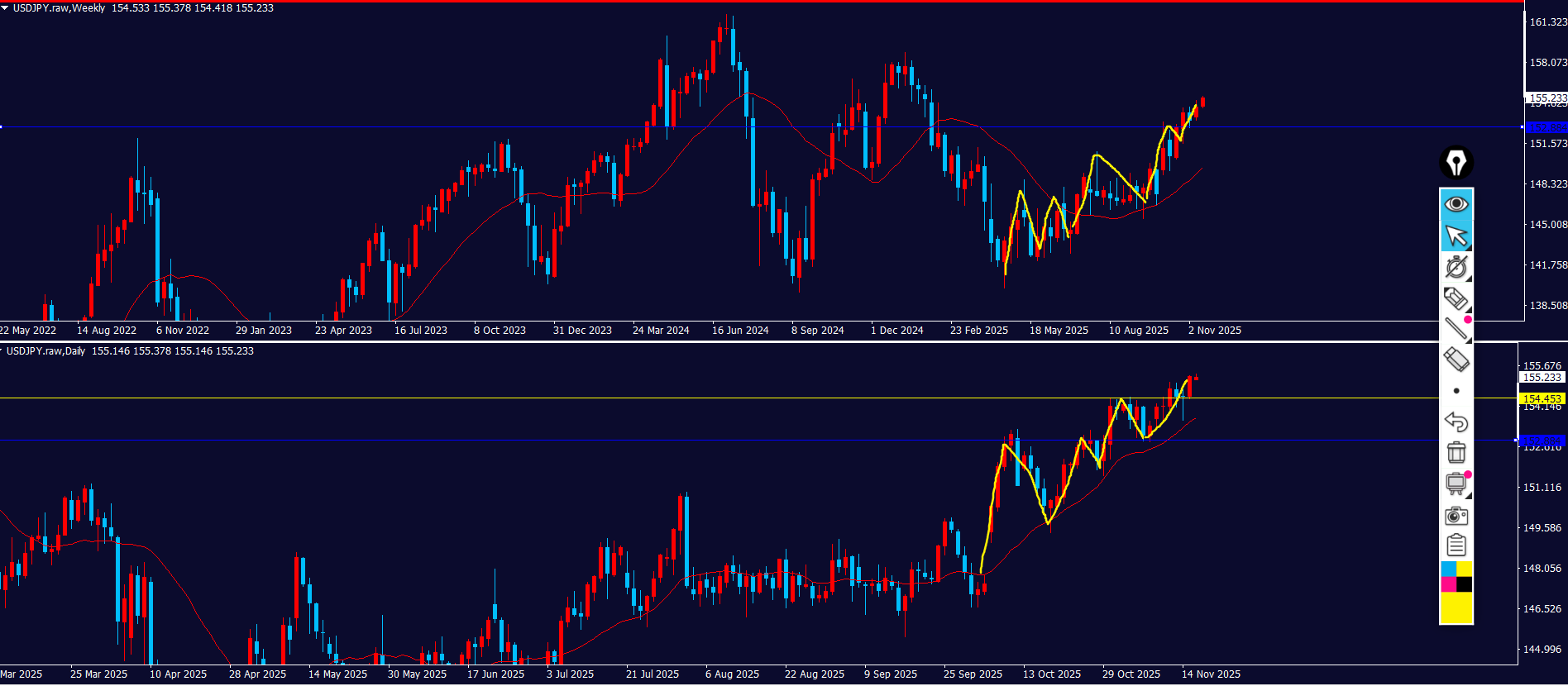 黄色ラインの下に押し目買い勢力がいる⇒波が出やすい