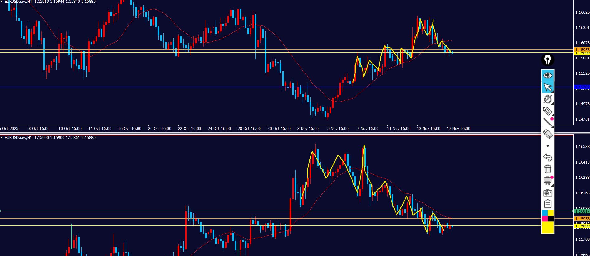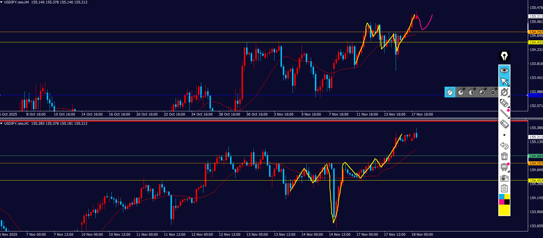 日足の押し目買いエリアと、4h戻り売りがぶつかるエリア。