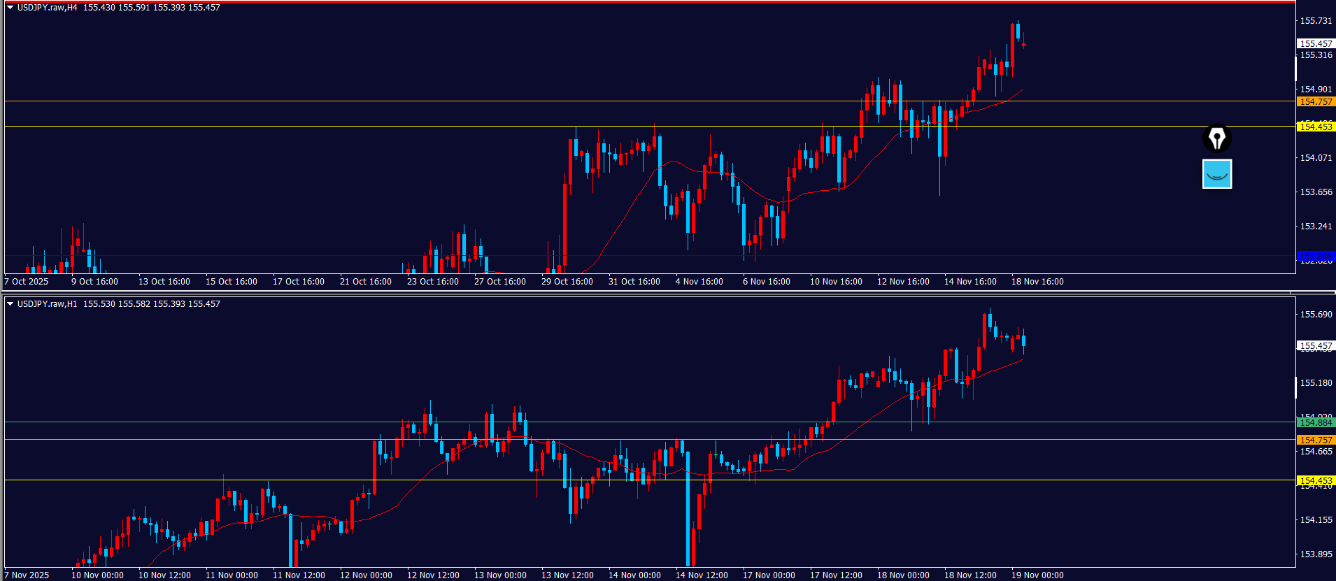 日足の押し目買いエリアと、4h戻り売りがぶつかるエリア。