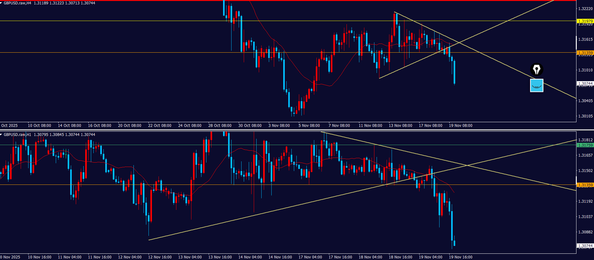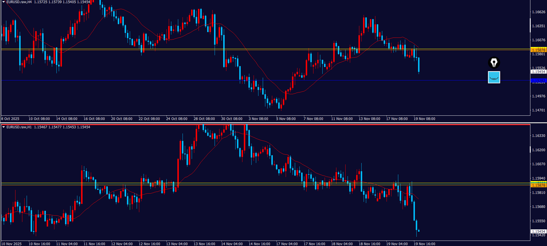 - こちらは1hのネックライン抜けではなく4hの水平線を抜けたとけど大きく戻されたので、やっぱ下目線だよねということをトリガーにエントリーしたので、セオリーと違うのでよろしくなかった。