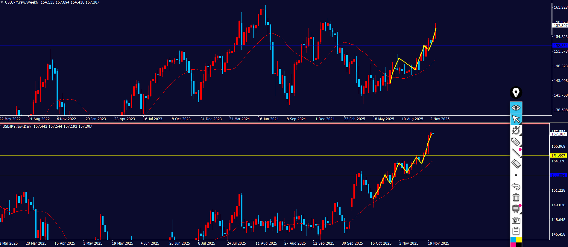 黄色ラインの下に押し目買い勢力がいる⇒波が出やすい