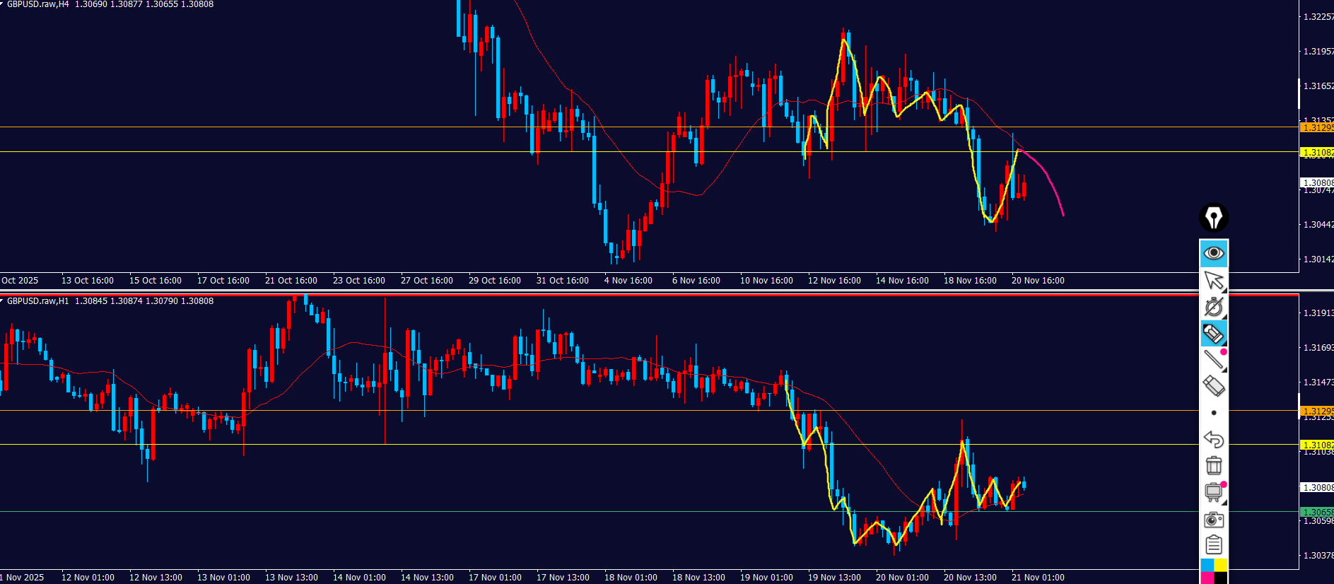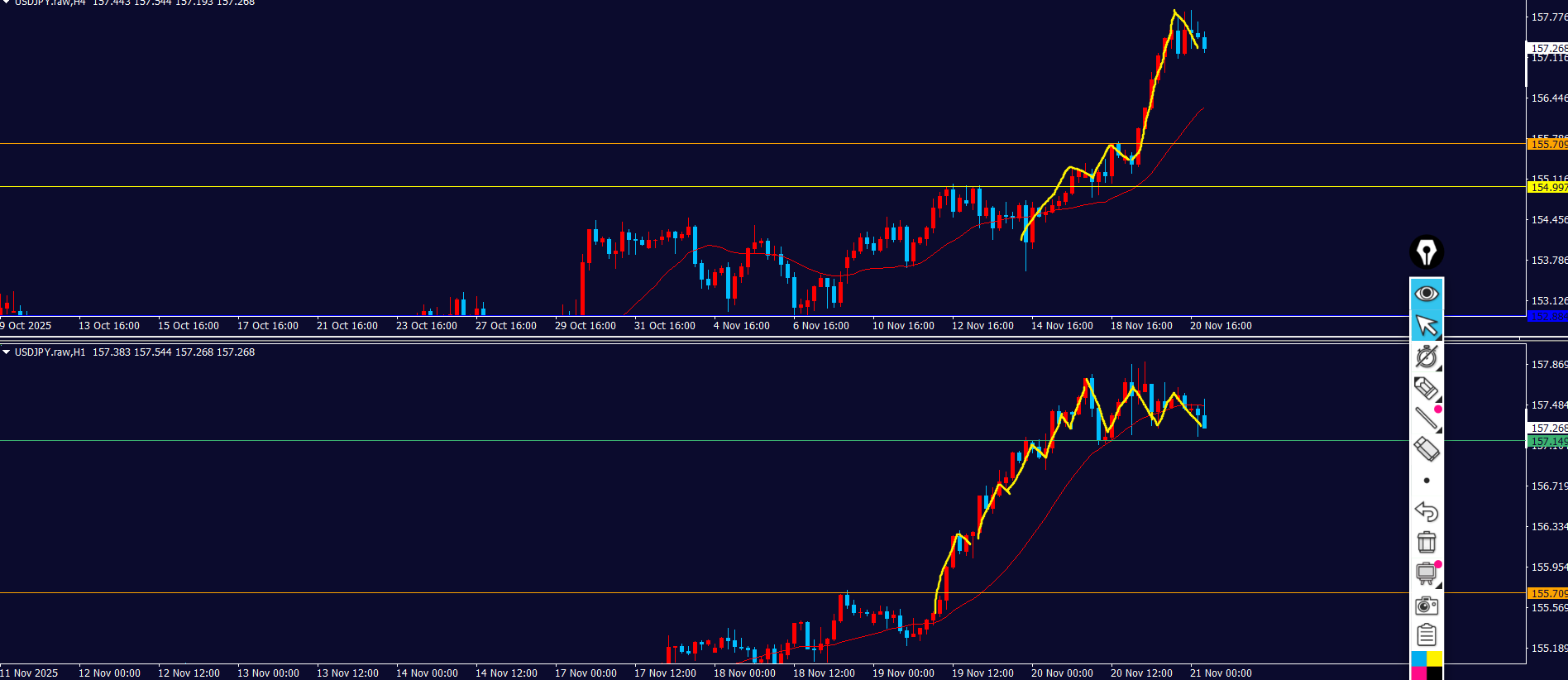 4hのMAを意識すると、水平線のだいぶ下で戻りをつけることになるので焦りは禁物