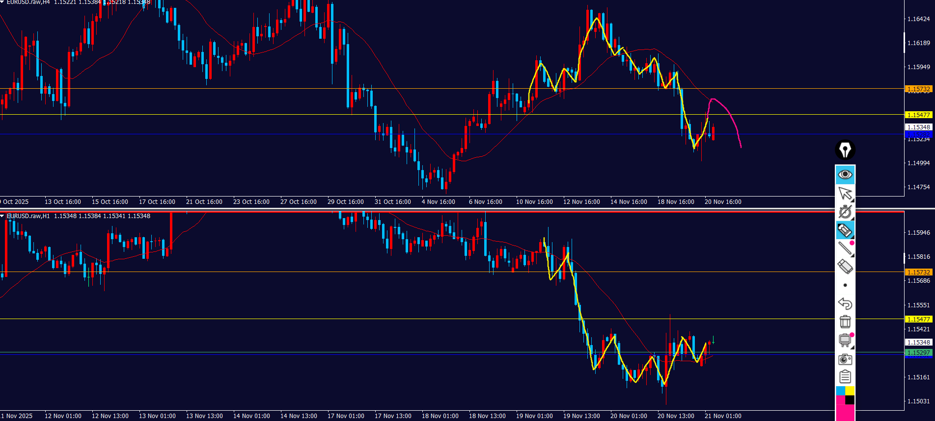 - 4時間足と1時間足同時にトレンド転換したら「攻防ライン」を見る