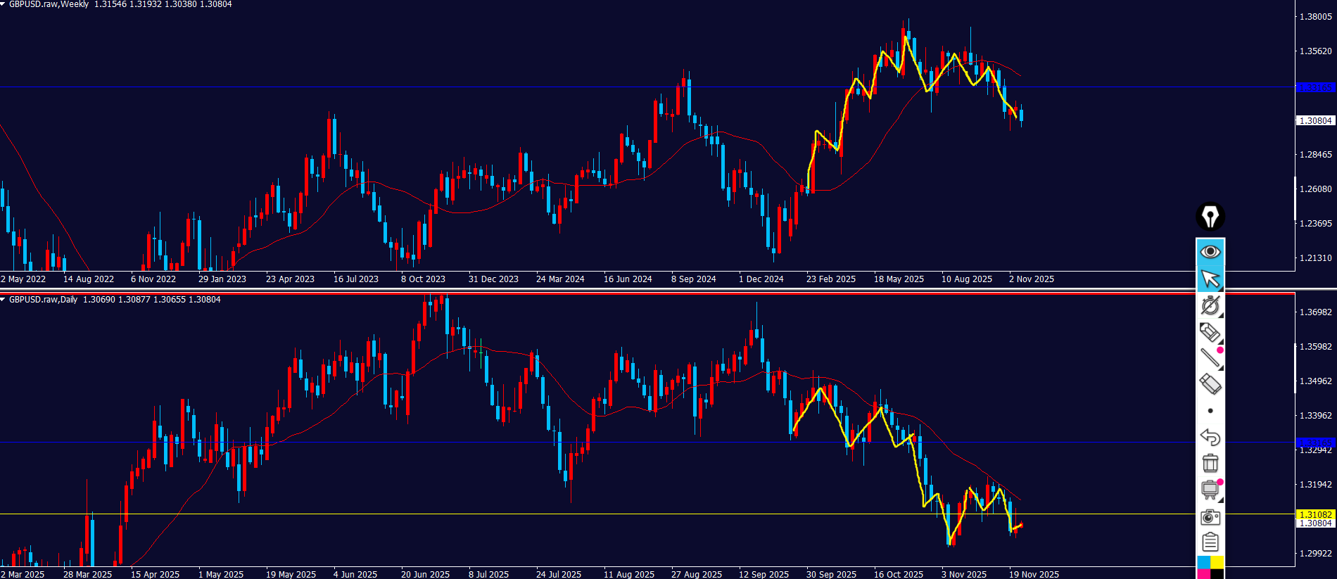 - エントリー前に必ず上位足も確認して、①波が出そうな位置であるか?②トレンドフォローになっているか確認する