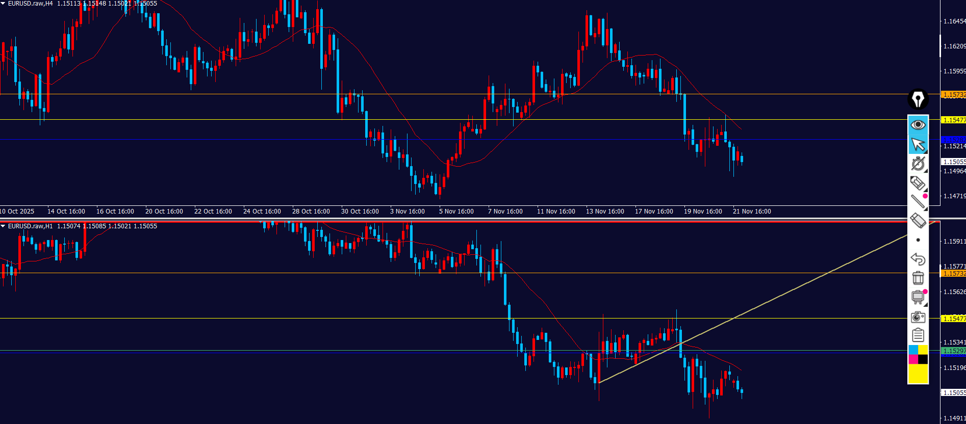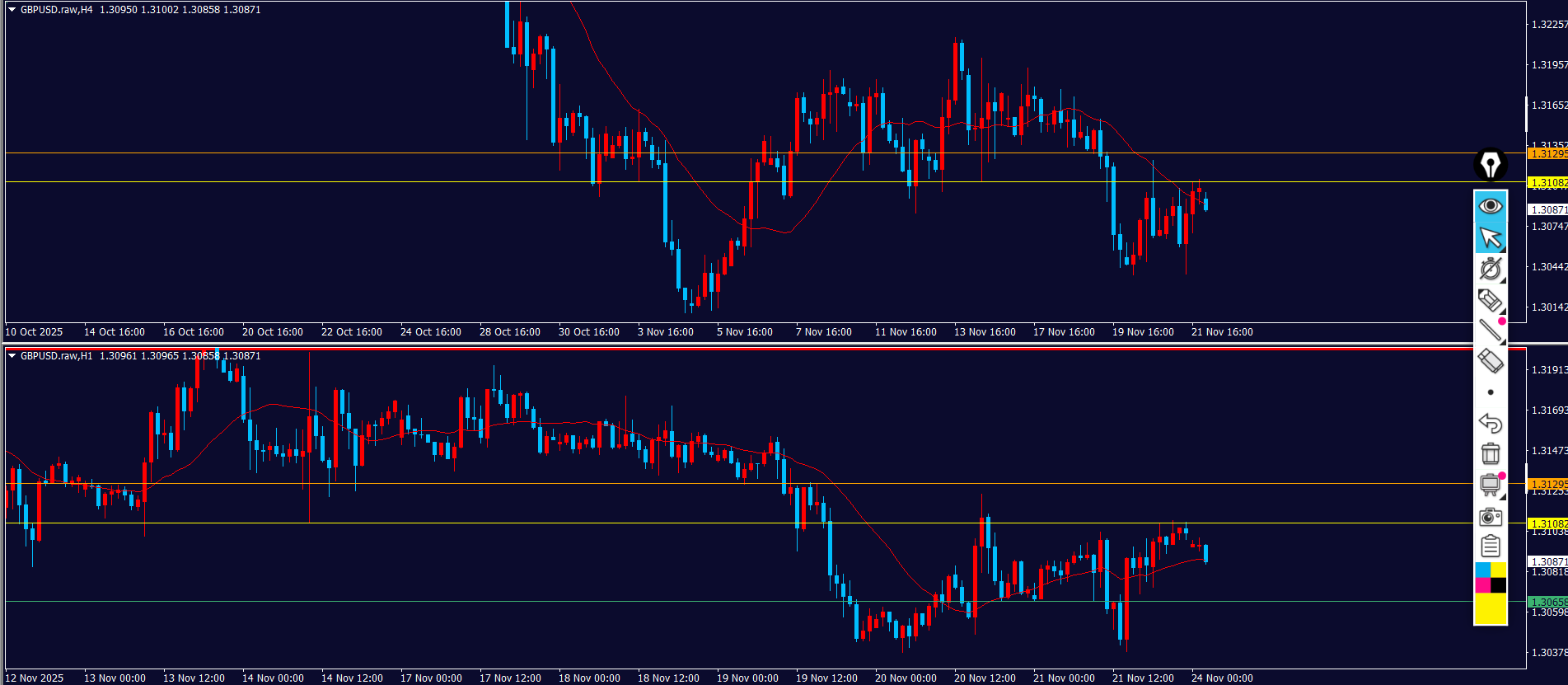 4hと1h同時に抜けたので4hの戻りまで来ずに、斜めの攻防ラインで波出るかも?(トレード日誌で答え合わせ)