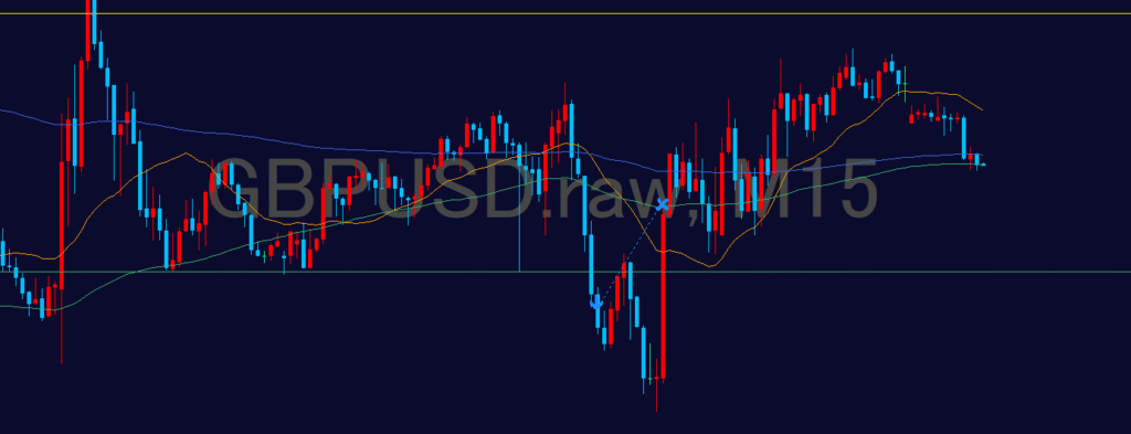 4hのMAを意識すると、水平線のだいぶ下で戻りをつけることになるので焦りは禁物