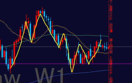 週足の紫ラインの売り勢力のところで、大きく髭の反応あり。