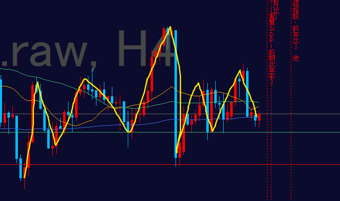 1Hでは押し目をつけに下方向安値に注文の集中が溜まりつつある。