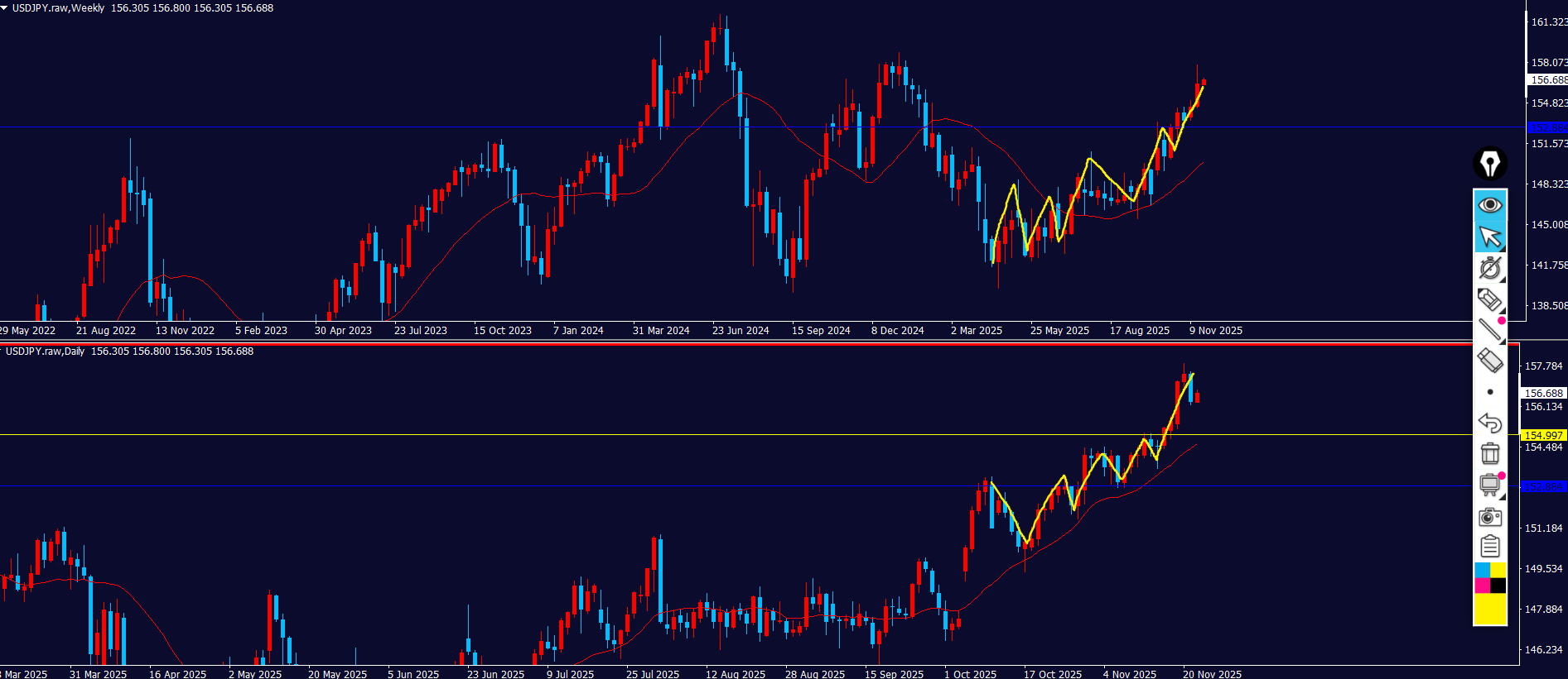 黄色ラインの下に押し目買い勢力がいる⇒波が出やすい