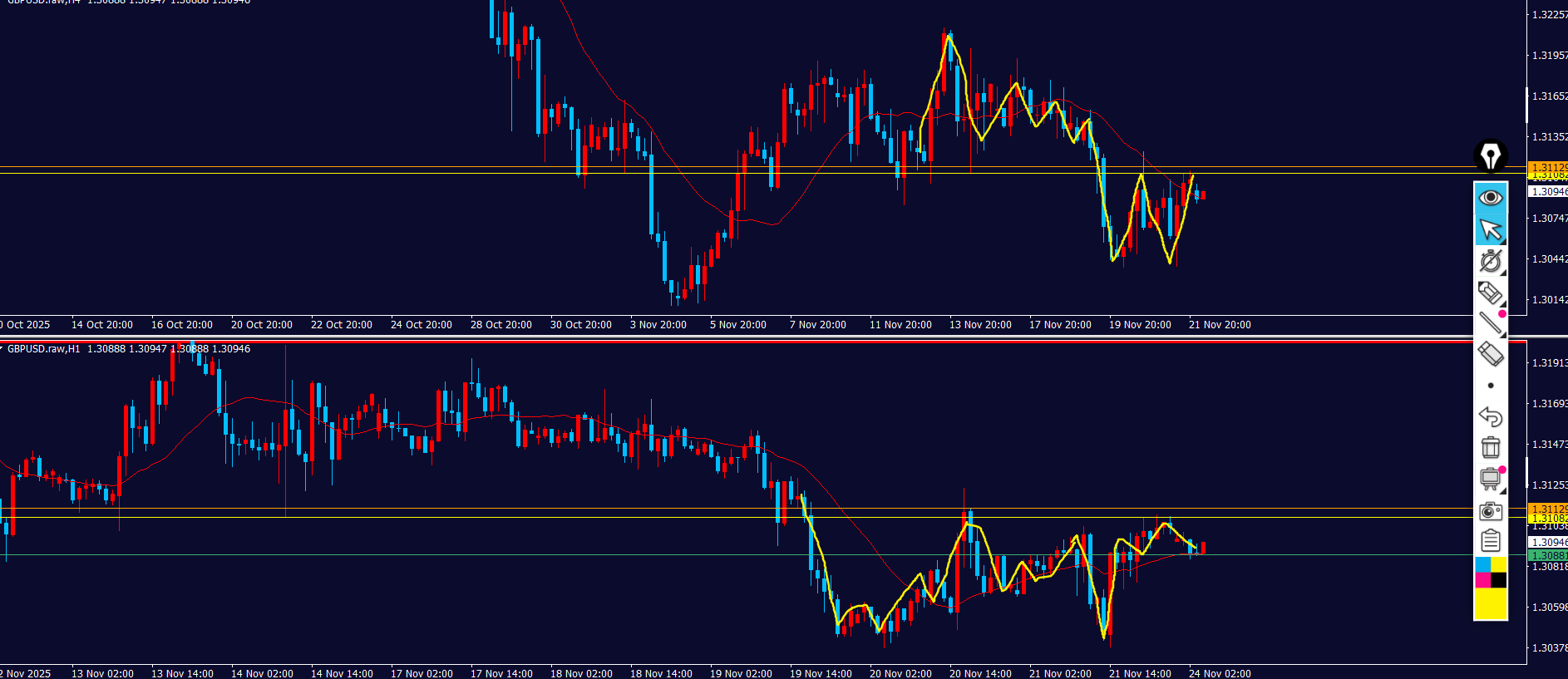 - 4時間足と1時間足同時にトレンド転換したら「攻防ライン」を見る