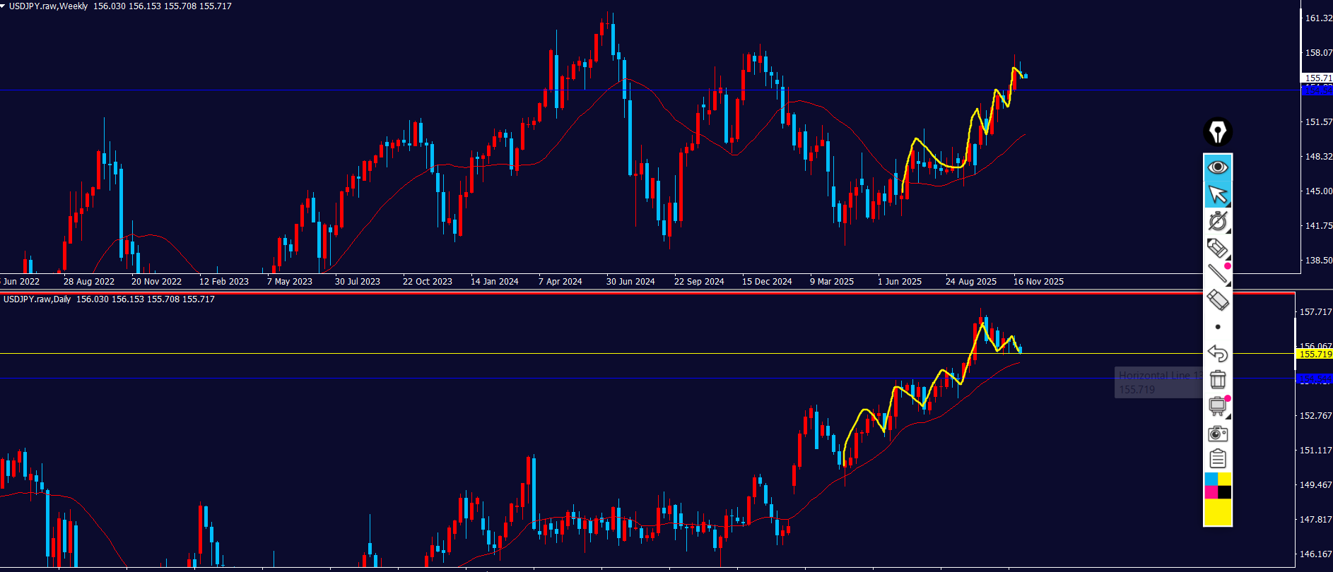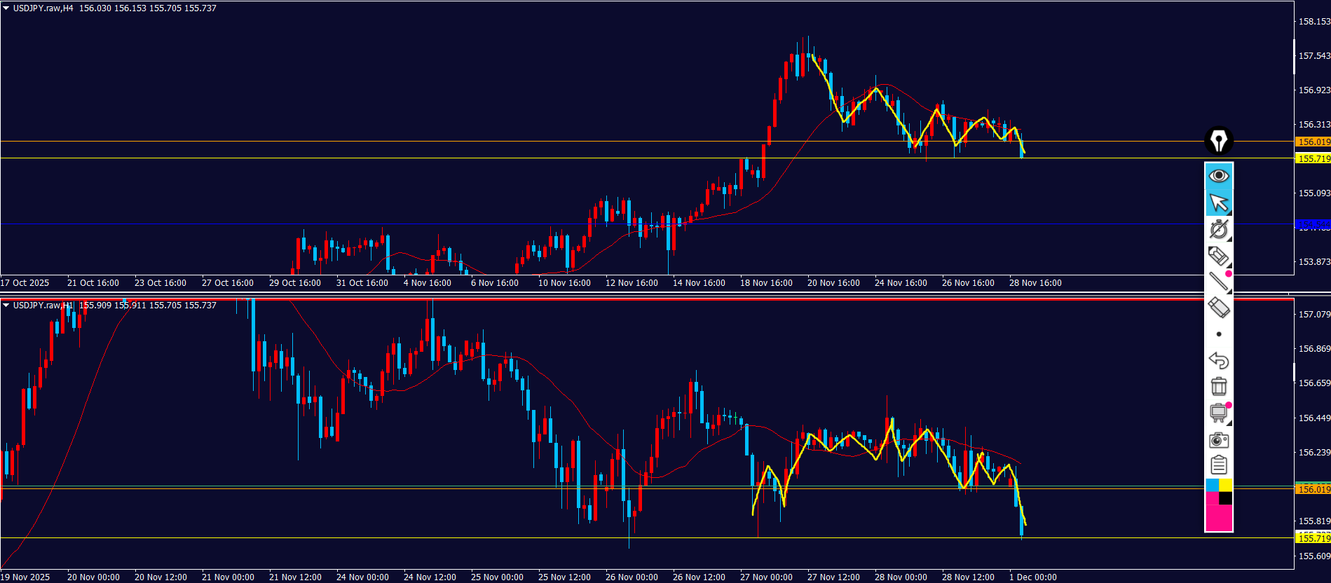 4hの売り方向のすぐ下に日足の買い支えがいる。