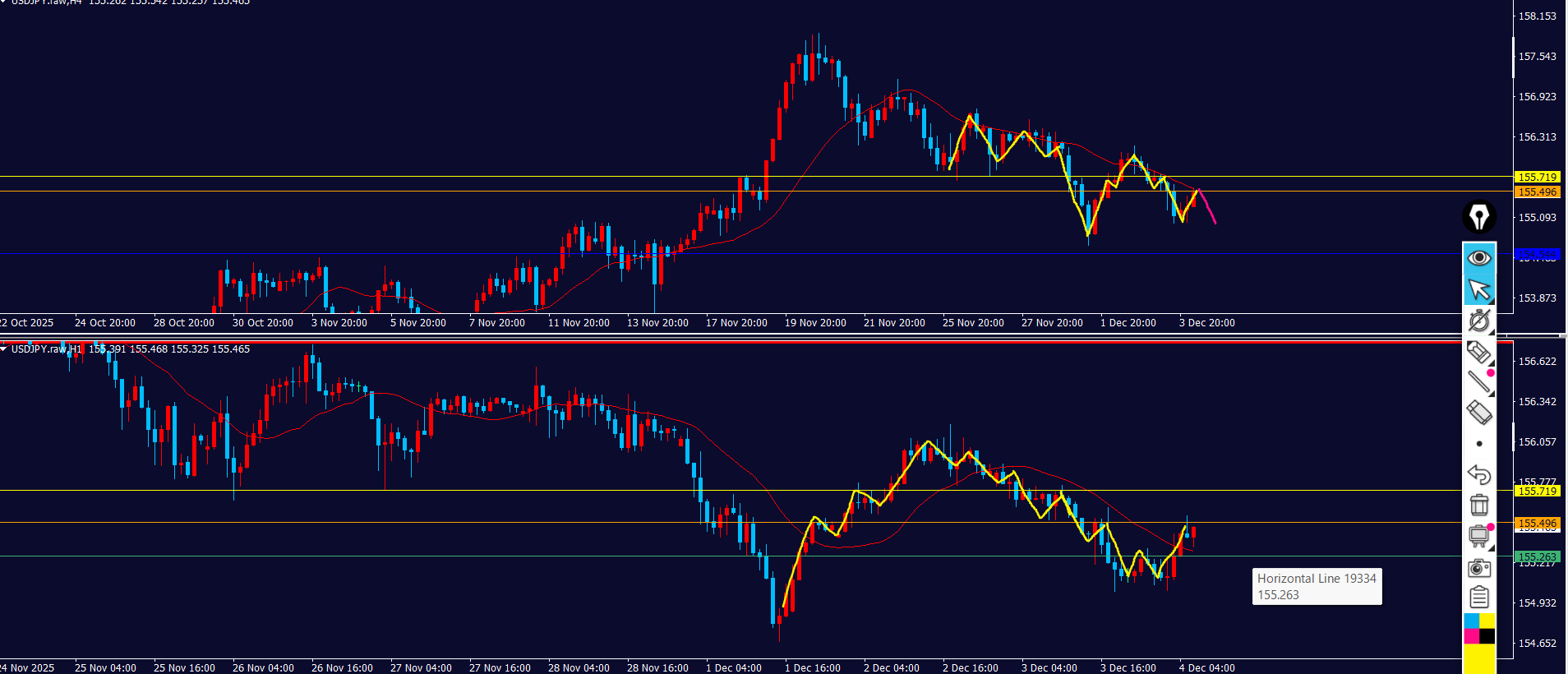 - 「4時間」の波が止まって押し目買い(戻り売り)エリアで入る
