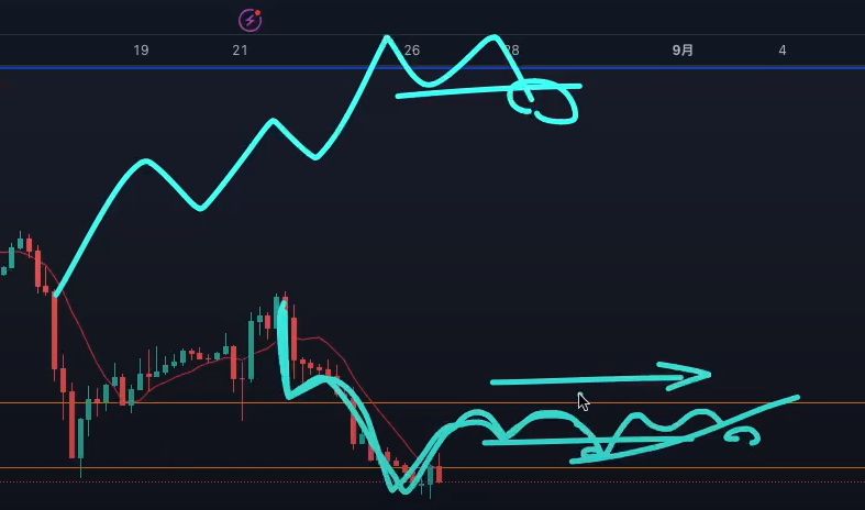 画像の場合、上のダブルトップは2番天井だけど、下は2番天井ではない。