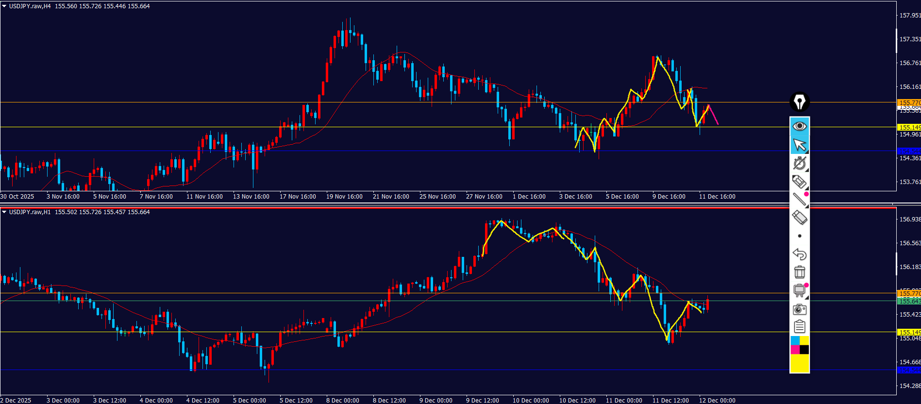 - 「4時間」の波が止まって押し目買い(戻り売り)エリアで入る