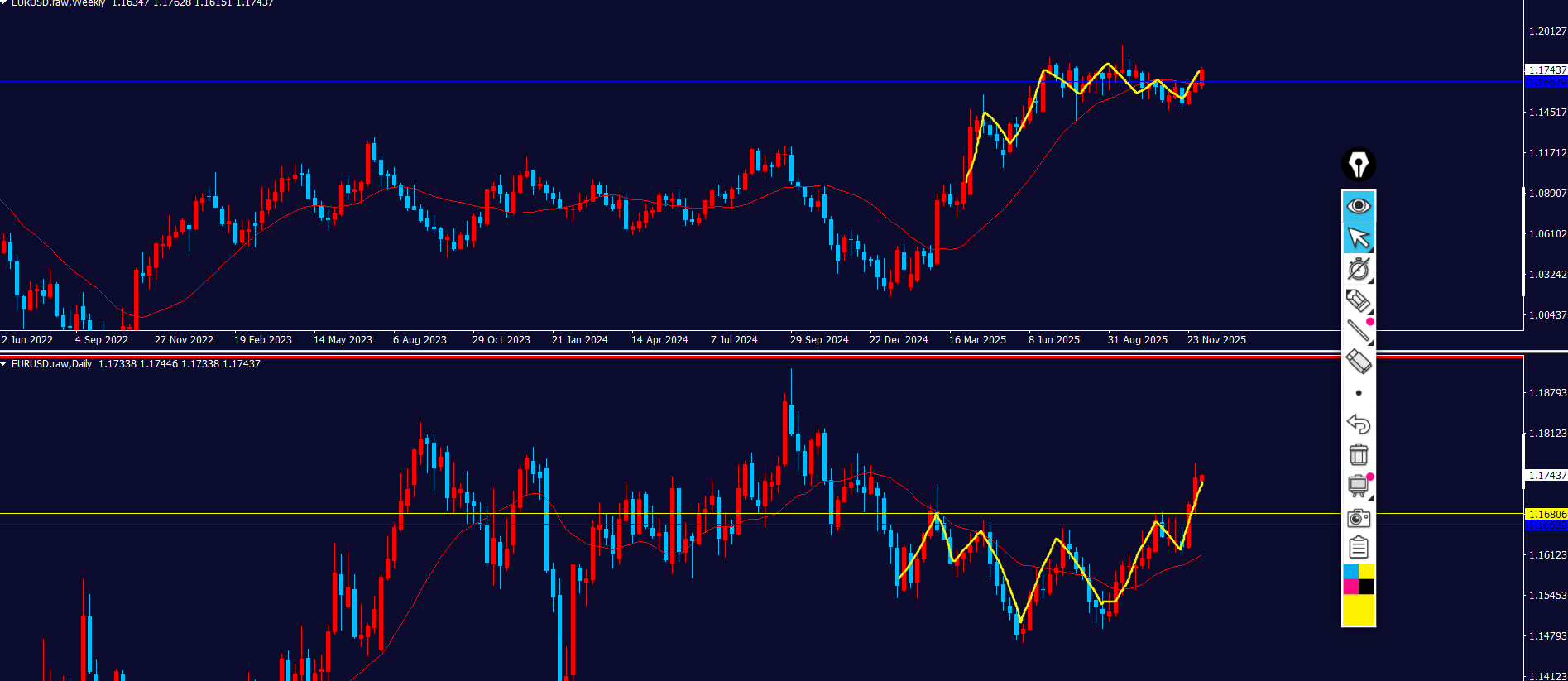 黄色ラインの下に押し目買い勢力がいる⇒波が出やすい